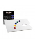 Un bloc de bonnes palette ne doit pas vous frustrer. Il y a plusieurs problèmes possibles, elles peuvent rider, la peinture peut couler à travers et déchirer la palette. La palette "Paper Palette Pad" de SoHo dispose d'un grammage de 100 g/m² et peut contenir beaucoup de peinture, la peinture ne coule pas d'une feuille à l'autre et la palette est assez solide pour prendre des coups de couteau occasionnels.