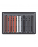 La gamme de Carrés Esquisse de Conté à Paris est composée de différentes teintes: sanguines, gris, bistre ainsi que des graduations de blancs et de noirs. De texture très douce, ces carrés sont fabriqués à partir de pigments naturels (oxyde de fer, noir de carbone, dioxyde de titane), d'argile (kaolin) et d'un liant (éther cellulosique). Très doux à l’application, les carrés sont fabriqués à partir de pigments naturels. Par la suite ils sont cuits après extrusion et séchage.