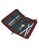 Empty with space for brushes, pencils and erasers.